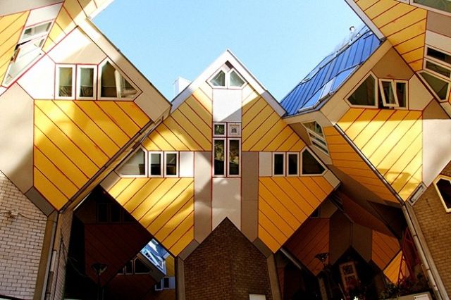 Rumah kubus di Rotterdam ini bentuknya begitu apik ya. Tumpukan-tumpukan kubus yang berwarna warni dan bikin pengen tinggal di sana. Hehehe