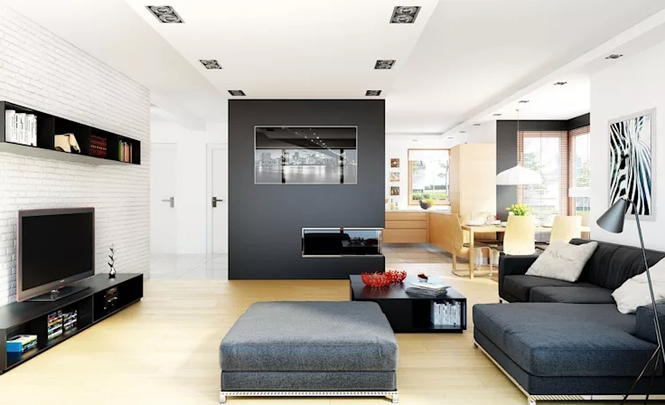 - Desain dengan karakter kuat di ruang tamu