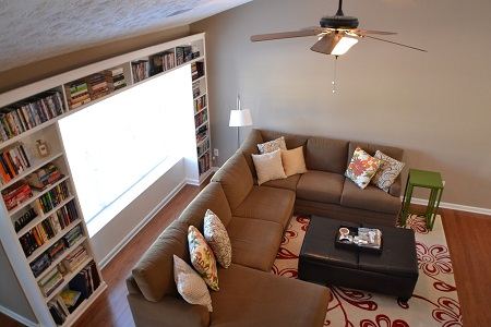 Ruang tamu yang kecil bisa mengindikasikan rumah yang kecil. Rumah yang kecil dengan barang-barang yang cukup banyak memang cukup merepotkan. Mengapa tidak memanfaatkan ruang tamu untuk menyimpan barang-barang seperti buku, kerajinan tangan, atau karya seni lainnya?