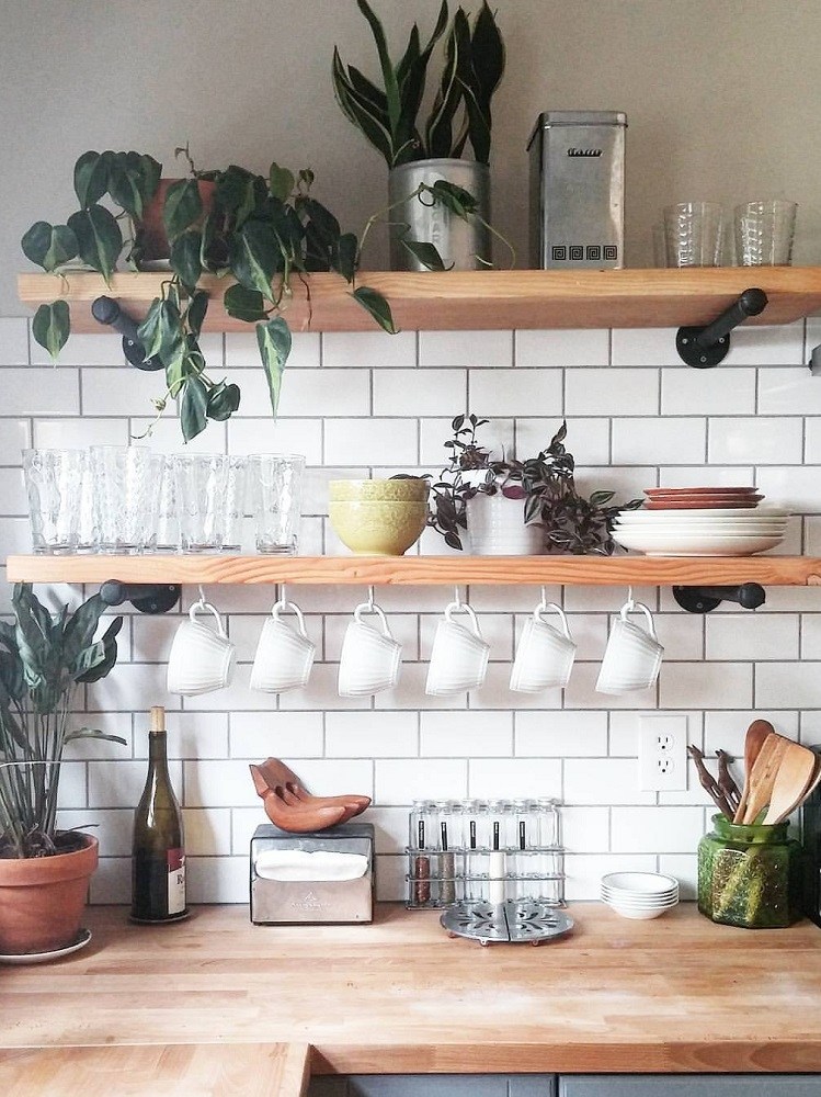 Tidak hanya membuat ruangan tampak lebih rapi, kontemporer dan menarik, rak dinding minimalis seperti ini juga sangat praktis, apalagi kalau kamu termasuk orang yang sibuk, tidak punya banyak waktu luang untuk bersih-bersih dan ingin menata dapur dengan rapi.