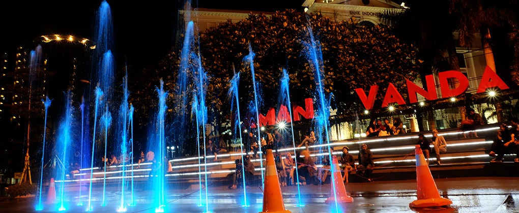 Lahan seluas 2.000 meter persegi bekas bioskop Vanda di tengah-tengah Jalan Merdeka, Kota Bandung, kini telah berubah menjadi pusat keramaian baru. Di sana, sekarang ada air mancur menari yang cantik sekaligus unik. Jika air mancur biasanya keluar dari dalam kolam, air mancur di Taman Vanda ini justru keluar dari bawah ubin granit.