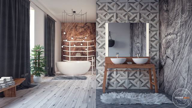 - Modern interior design of bathroom 3D Render