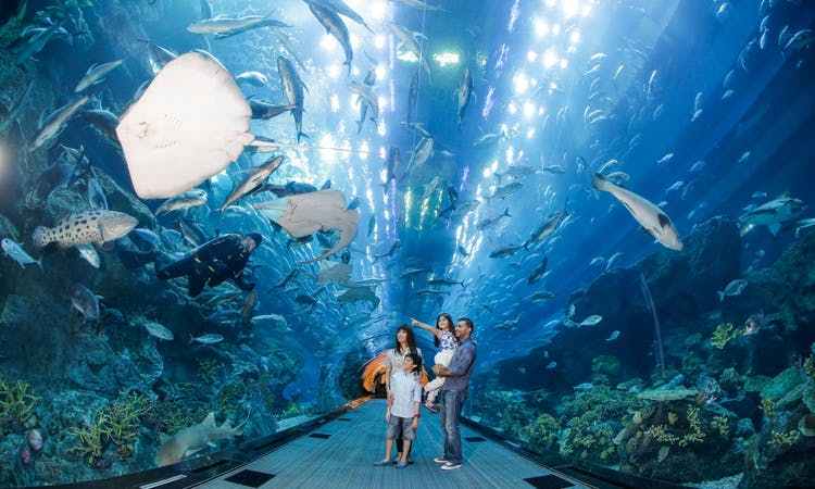 Melalui Dubai Aquarium, kamu bukan hanya bisa melihat ribuan ikan, melainkan juga aneka biota laut yang menarik. Setidaknya ada 33.000 biota laut yang bebas berenang di sana dengan 85 spesies berbeda, termasuk 400 kombinasi dari hiu dan ikan pari.