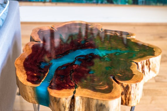 Seperti yang terlihat di gambar di atas, seolah-olah kita sendang melihat pemandangan yang indah dengan aliran sungai yang tenang. Meja dengan resin ini cukup indah bukan.