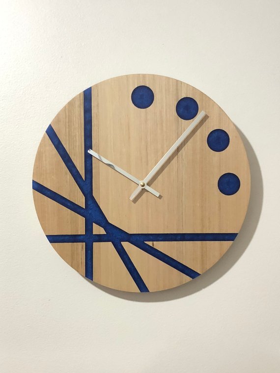 Dengan di hiasi beberapa garis-garis dan bulatan-bulatan, jam dinding ini terlihat tradisional. Garis tersebut di buat dengan resin yang tepat, bahkan bagi beberapa orang jam ini terlihat elegan jika di padukan dengan warna background dinding yang tepat.