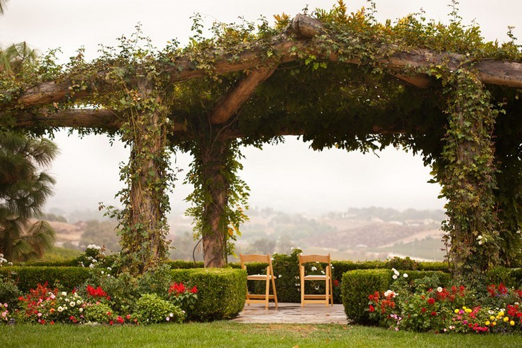 Bagi para pecinta tanaman, gazebo minimalis ini bisa jadi desain yang mencerminkan diri kamu. Tanamlah sejumlah tanaman hijau merambat untuk menghiasi struktur gazebo minimalis yang terbuat dari batang pohon utuh. Setelah itu tambahkan bunga dan semak-semak sebagai pembatas area gazebo minimalis dengan taman.