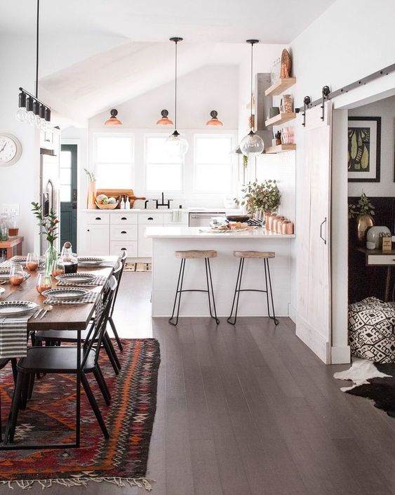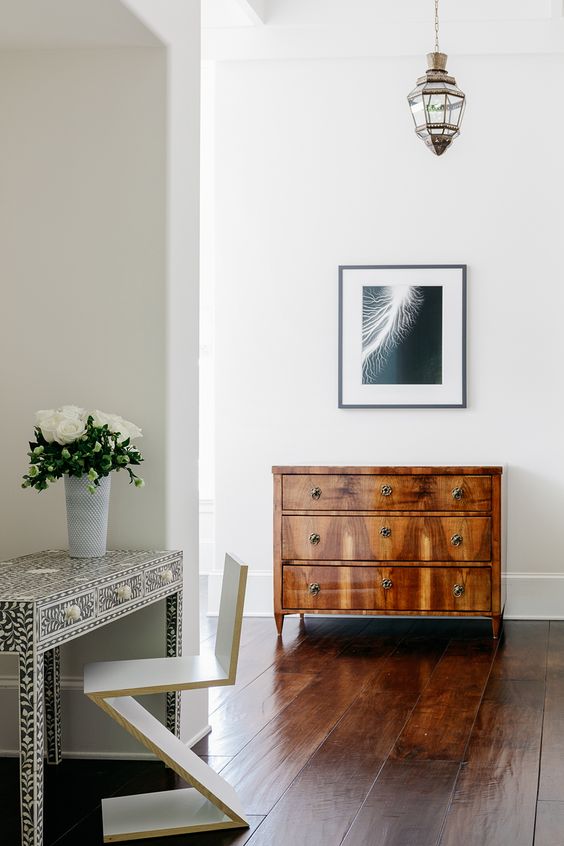 Memadukan material kayu dengan aksen lain yang memiliki undertone sama, bisa memberi kesan warna yang cenderung monoton. Karena itu agar lebih tampak cantik dan menonjol, Kamu bisa mencoba untuk menampilkan kesan kontras dari perpaduan tersebut. Misalnya dengan meja kayu yang memiliki tone terang dipadukan dengan kursi berwarna gelap, atau sebaliknya.