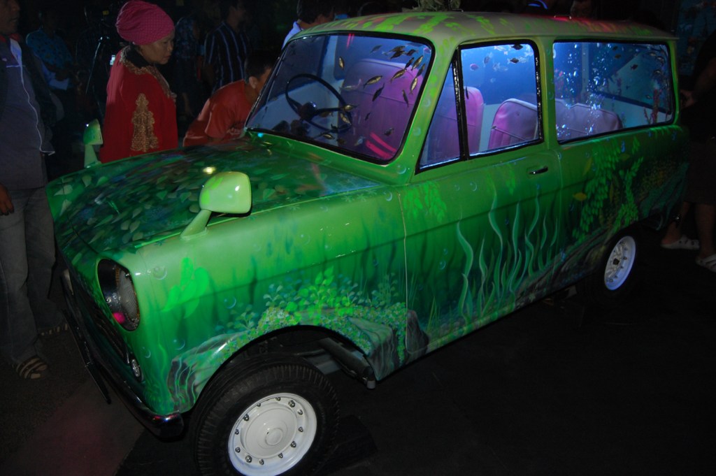 Semua interior mobil seperti setir dan jok tetap dibiarkan seperti aslinya di dalam akuarium unik ini. Saat ini, akuarium unik berbentuk mobil pun menjadi wahana baru yang menghibur seluruh pengunjung Sea World. Tahu nggak? Butuh waktu sekitar tiga bulan lho untuk mengubah sebuah mobil kuno menjadi akuarium unik ini. Proyek pembuatan akuarium unik ini menghabiskan dana sekitar 100 juta rupiah.