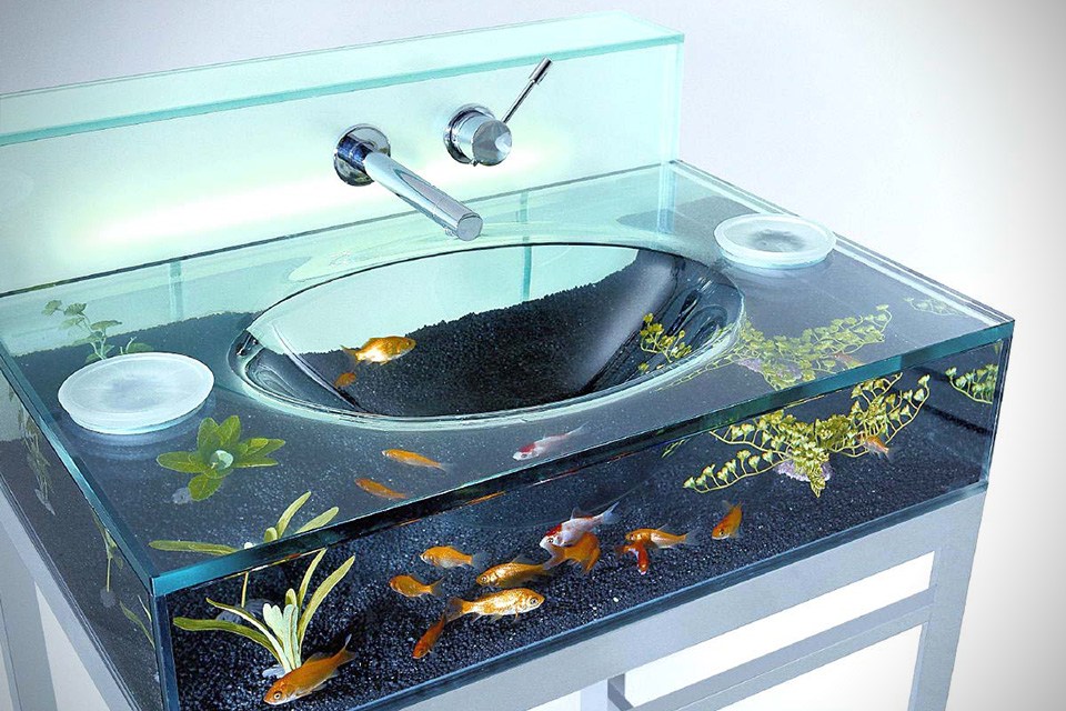 Buat kamu pecinta ikan hias, nggak ada salahnya mengganti wastafel di rumah dengan akuarium unik berbentuk wastafel seperti ini. Dengan adanya akuarim unik ini, kamu bisa melihat ikan-ikan berenang saat mencuci tangan atau saat sedang menggosok gigi. Anak-anak pasti nggak bakal malas mencuci tangan dan sikat gigi lagi nih kalau ada akuarium unik yang satu ini di rumahmu. Kamu pun bisa menghias akuarium unik ini dengan berbagai tumbuhan air alami maupun sintetis.