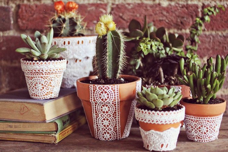 Pot bunga minimalis dari tanah liat yang satu ini adalah pot yang paling populer. Tampilannya yang polos membuat kamu lebih mudah untuk menghiasnya. Misalnya saja menggunakan kain renda berwarna putih. Kamu hanya perlu memotong sesuai dengan ukuran pot bunga minimalis ini, kemudian lem bagian ujung kain renda.