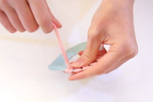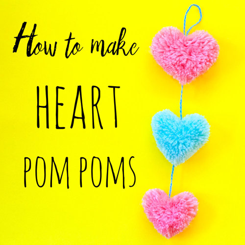 Lanjutkan langkah 1-4 dua kali lagi untuk membuat dua pom pom hati lagi. Saya membuat dua hati merah muda dan satu hati biru.