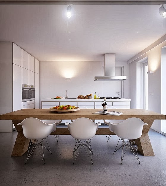 Kursi robotik yang tertata rapi di keliling meja kayu membuat ruangan yang didesain minimalis unik ini memberikan kesan alami, bersih. Suasana ini sungguh menyenangkan bagi anda yang menghuninya. Anda bisa merubah atau memodivikasi ruangan ini dengan memberikan efek cahaya yang temaram dan warna dinding yang agak hijau atau orange dengan warna kursi robotik yang orange juga. Ini hanya sebatas ide dalam mendesain interior rumah minimalis, anda bisa berkreasi sesuai dengan imajinasi anda.