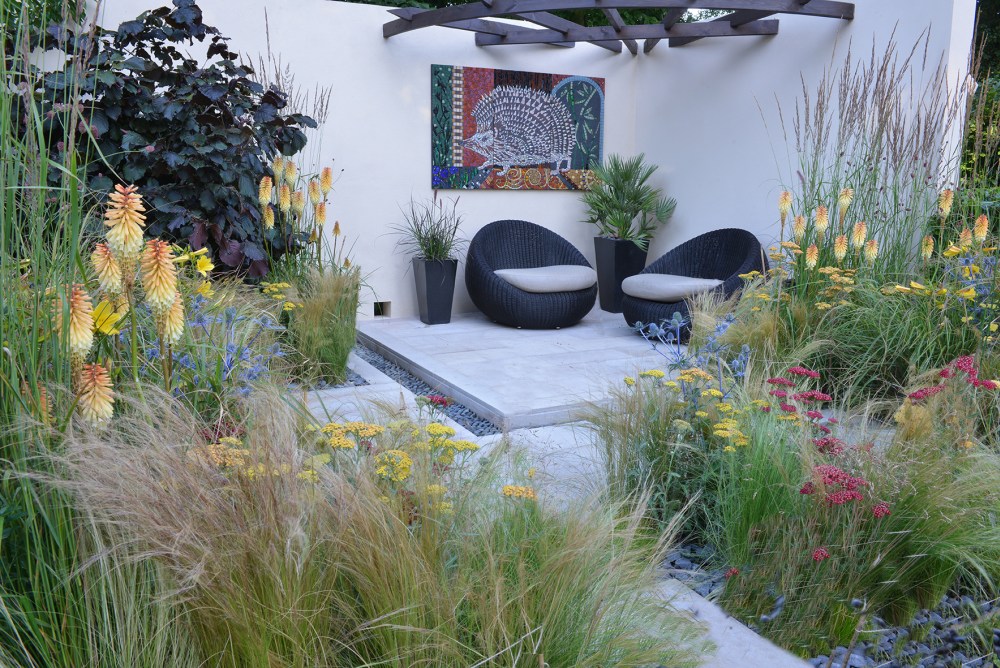 Selain petak rumput kecil, rumah kebun ini juga dipermudah dengan pot-pot dinding yang menyatu dengan area secara keseluruhan. Alhasil, rumah kebun jadi area tempat duduk yang bikin nyaman.