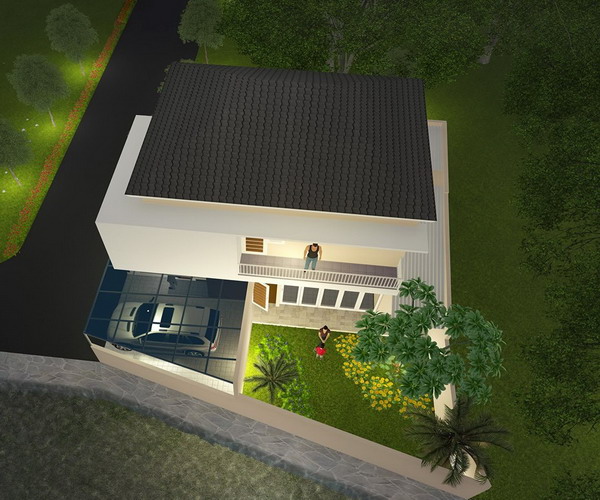 Kalau anda perhatikan dari gambar desain rumah diatas terlihat sekali ada sebuah taman yang porsinya cukup besar berada disamping rumah, katanya sih.. dia pengen sebuah rumah yang terlihat hijau dengan adanya taman di rumah sehingga anak-anak dapat bermain dengan nyaman.