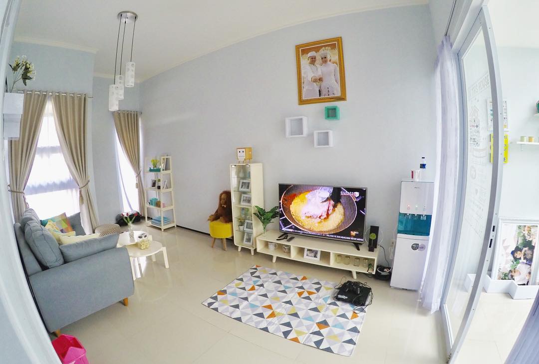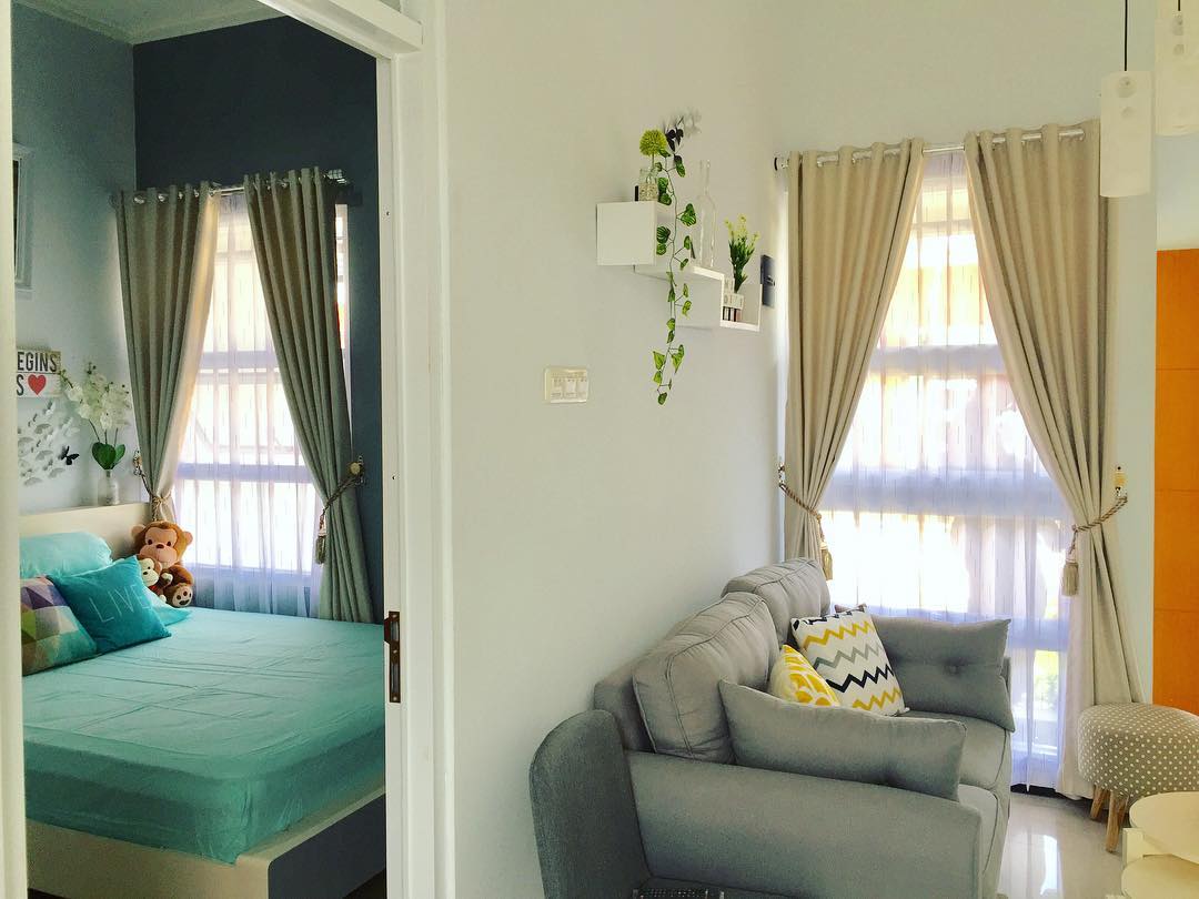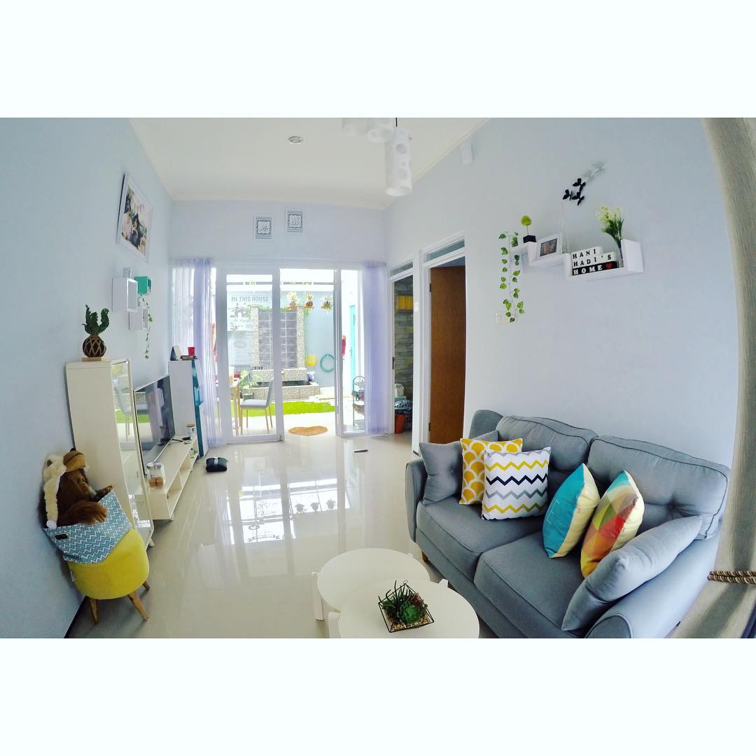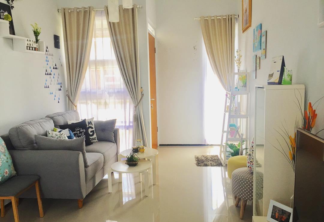 5. Berukuran mini, ruang tamu bisa disatukan dengan ruang keluarga. Usahakan juga untuk memilih sebagian besar furniture dengan warna natural supaya dalam rumah tidak terlihat terlalu sesak.