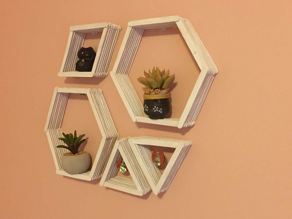 Hanya dengan stik panjang dan lem yang bisa kamu dapatkan di toko bahan keranjinan tangan, dekor kamar minimalis bisa kamu dapatkan dengan cara menyambung hingga terbentuk rak dinding unik untuk ditempelkan di dinding. Tambahkan juga dengan dekor kamar minimalis seperti kaktus lucu diatas, suasana bakal semakin pas!