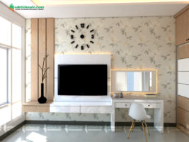 Backdrop tidak bisa di pandang sebelah mata karena bisa menggantungkan televisi sebagai pengganti rak TV. Fungsi dari backdrop TV tentunya agar ruangan semakin estetik.