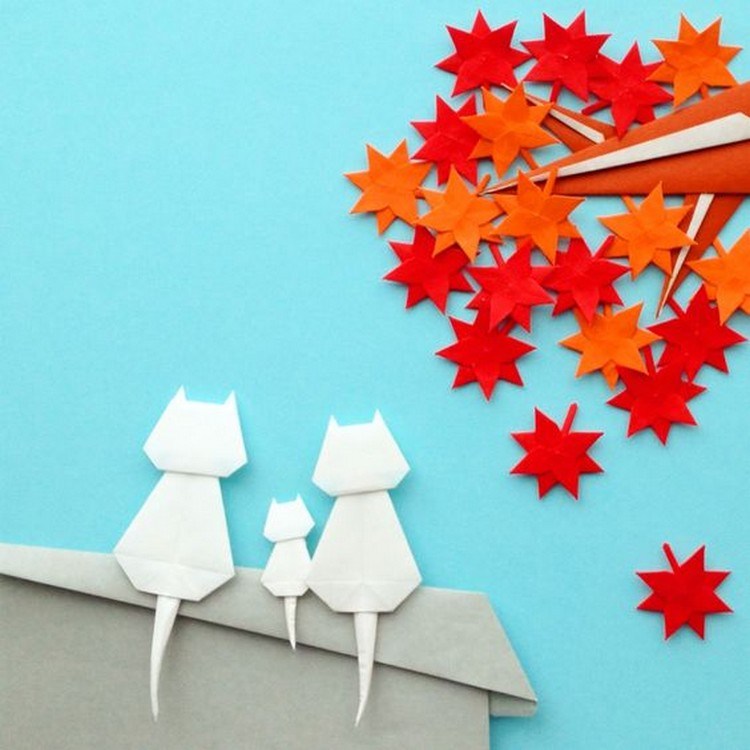 Untuk origami yang satu ini, kamu membutuhkan bentuk kucing, atap rumah, dan pohon dengan daun lebat. Cocok diletakkan di sudut dinding atau pun diberi bingkai foto agar terlihat seperti lukisan sungguhan.