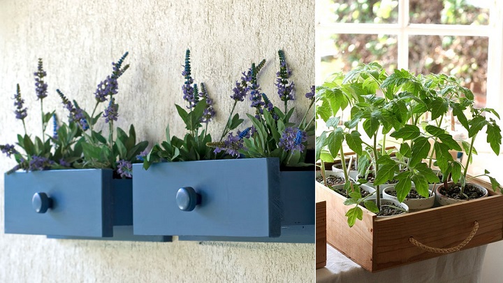 Aneka barang bisa beralih fungsinya jika masih bisa digunakan seperti rak tanaman hias di atas. laci dari lemari yang sudah tidak terpakai dapat digunakan menjadi rak khusus untuk menaruh tanaman dalam pot maupun membuat kebun mini. Rak ini bisa menampung tanaman berukuran sedang. Jika menggunakan rak ini ada baiknya kamu meletakkan penyiraman kecil di dalamnya, jadi saat waktu penyiraman kamu tidak perlu bolak balik mengambil air.