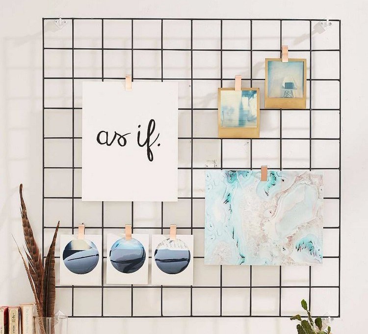 Grid wire sebagai papan memo di kamar tumblr
