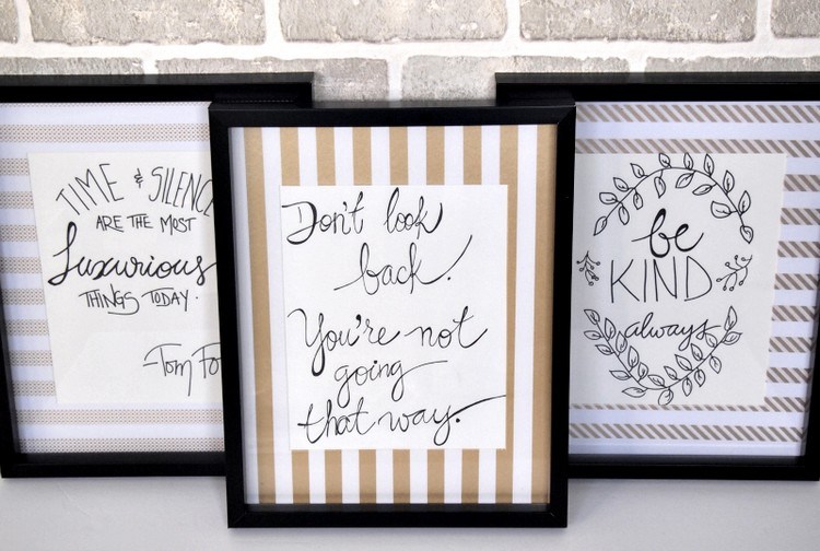 Kamu bisa membuat pajangan ini sendiri. Pertama-tama, pilihlah kata mutiara atau sign tipografi favoritmu. Kemudian cetak di kertas dan masukkan ke dalam bingkai foto yang ukurannya sesuai.