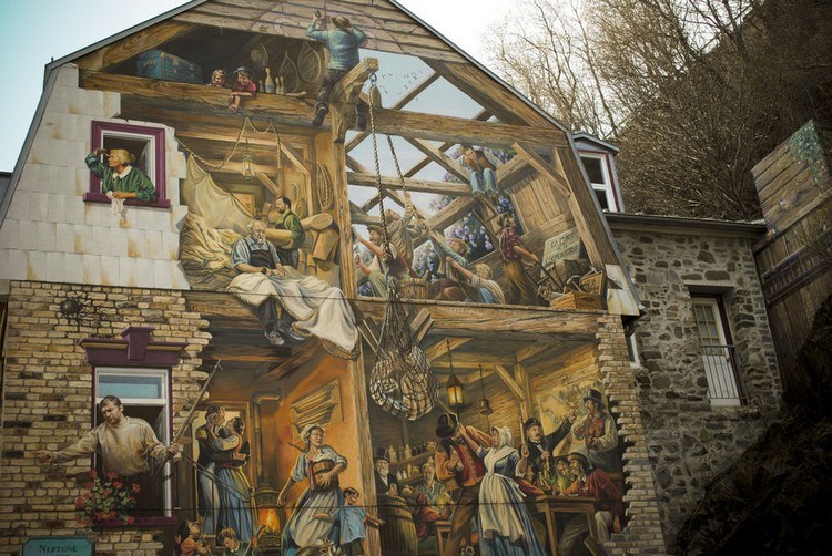 Gambar Mural ini ada di Quebec, Kanada. Gambar mural yang dibuat pada tahun 1999 ini masuk dalam kategori ilusi mata di mana para orang yang melihatnya seakan-akan dibawa ke tempat lain melewati sebuah gerbang.