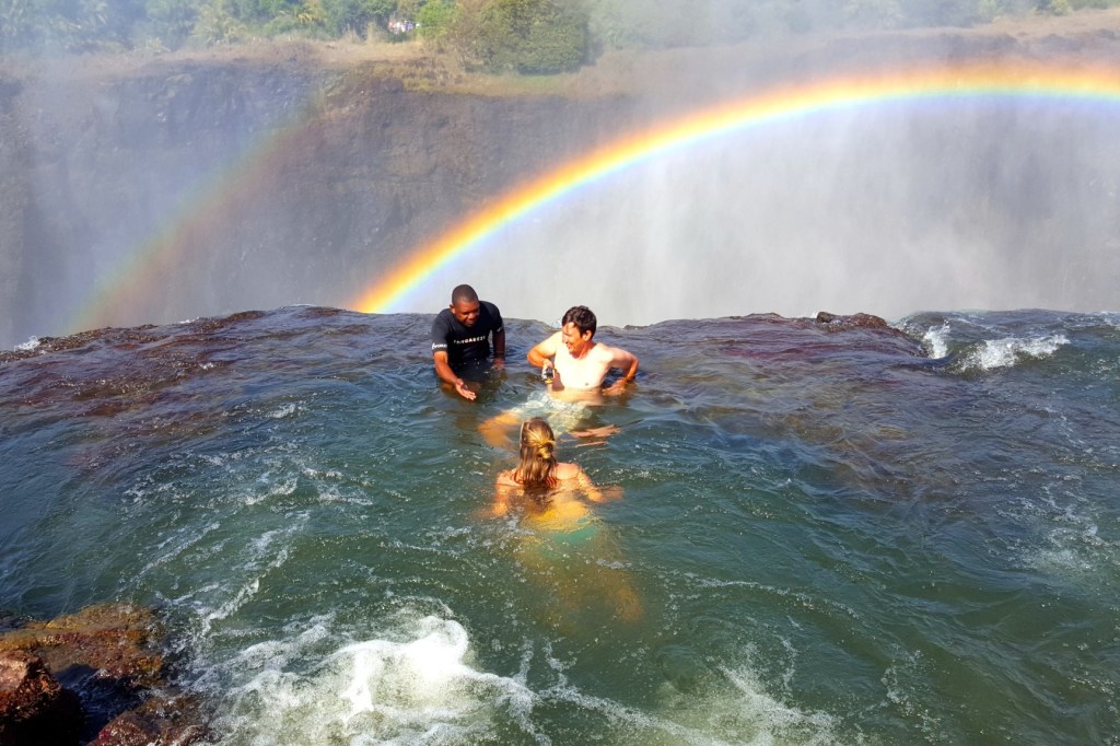 Alam Afrika memang tidak ada habisnya. Masih di Zambia, Afrika bagian Timur, terdapat sebuah kolam renang alami yang indah sekaligus menantang adrenalin para pengunjungnya. Jika kamu beruntung, kamu dapat berenang dengan berlatarkan warna-warni pelangi yang menakjubkan.