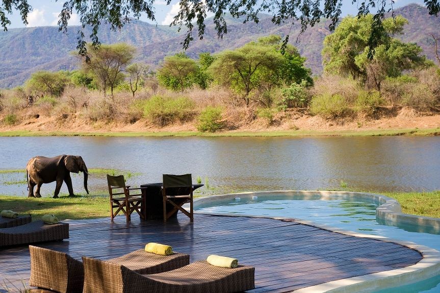 Keindahan panorama alam bebas Afrika menjadikan kolam renang yang dibangun di tepian sungai di Zambia ini sangat menyatu dengan alam. Tepian kolam renang ini pun dibuat melengkung selaras dengan bentuk alam di sekitarnya yang minim bentuk bersudut.
