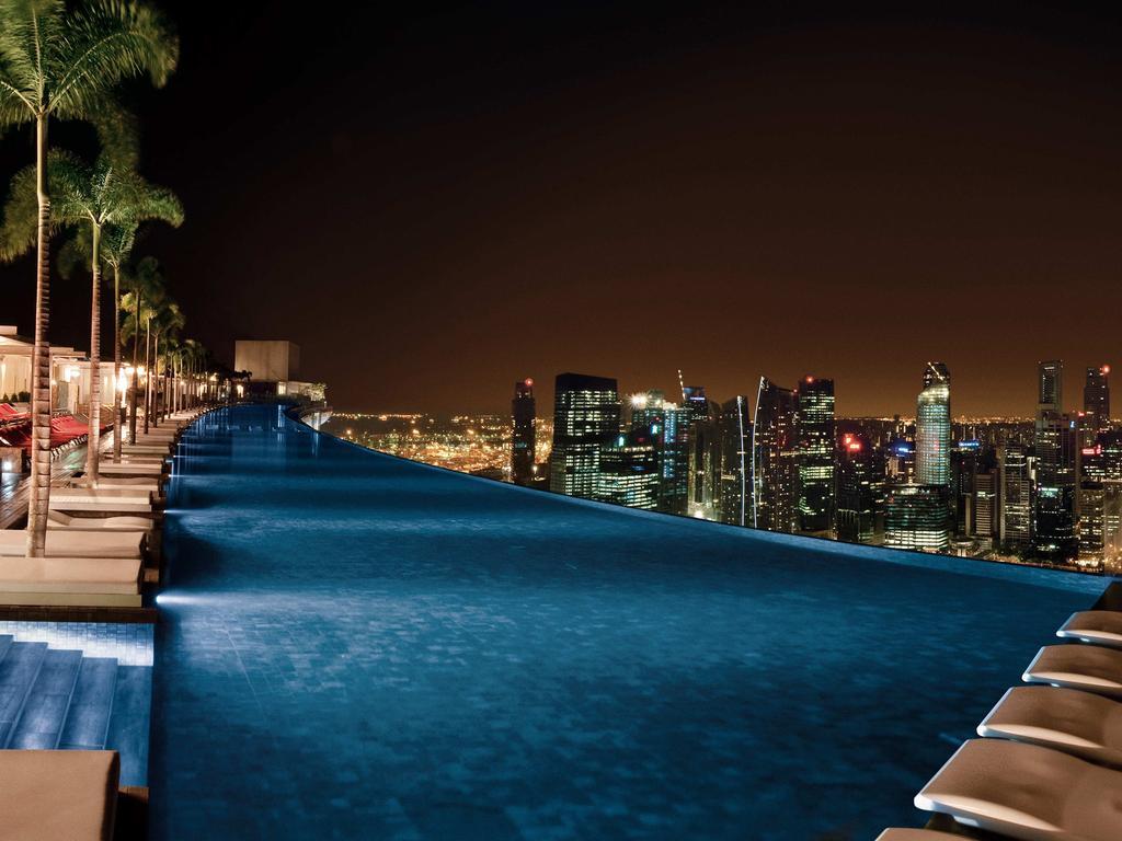 Tidak hanya identik dengan alam yang natural dan asri, ternyata salah satu kolam renang terindah di dunia juga dapat ditemui di tengah hutan beton kota Singapura yang modern. Saat berenang di kolam renang ini, kamu seperti merasakan melayang di antara gedung-gedung pencakar langit. Pasalnya, kolam renang yang membentang di areal atap salah satu hotel bintang lima ini dibuat pada ketinggian 500 kaki.