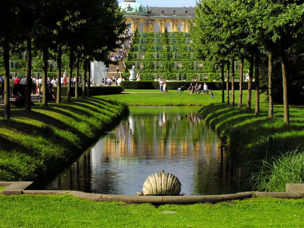 Berada di halaman Sans Souci Palace, Postdam, Jerman, taman istana yang luasnya mencapai 1,6 kilometer persegi ini memiliki lanskap yang sangat menarik dengan kolam taman dan air mancur yang menjadi sumbu taman. Patung-patung bersanding dengan tanaman, deretan bunga mekar aneka warna membingkai jalur sisi jalan setapak pada taman tersebut.