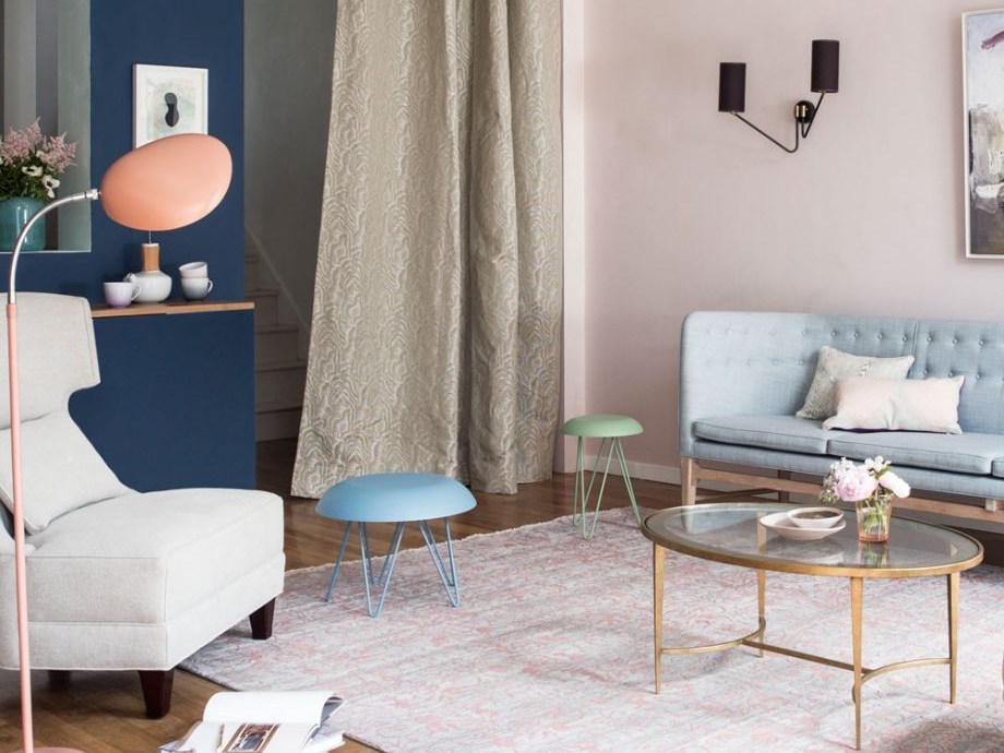 Kesan Pastel yang Manis dari Pink dan Biru Navy untuk Warna Cat Ruang Tamu