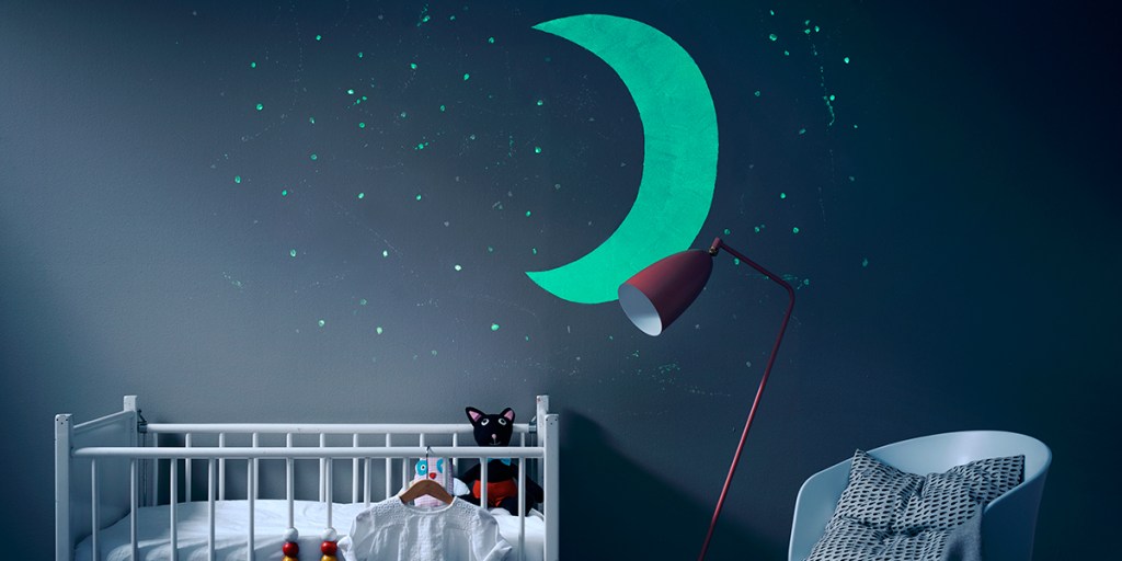 Untuk menemani dalam kegelapan, dekorasi dinding kamar yang paling cocok dan tetap cantik adalah stiker glow in the dark yang dapat menyala dalam kegelapan. Stiker ini banyak dijual dalam berbagai bentuk dan harganya pun terbilang murah.