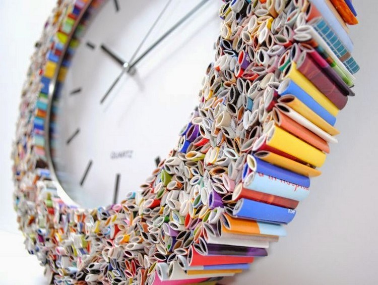 Catlah bagian luar dus atau bungkus menggunakan kertas majalah sehingga terlihat warna-warni. Setelah itu rekatkan menjadi satu menggunakan lem hingga kamu mendapatkan bentuk yang diinginkan. Selain bingkai jam dinding, kreasi barang bekas yang satu ini juga bisa dijadikan bingkai foto.