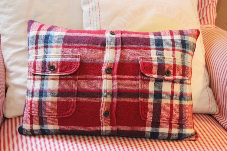 Baju-bajumu mulai kekecilan atau terlihat lusuh, namun sayang untuk membuangnya? Ubah saja menjadi sarung bantal yang menggemaskan seperti kreasi barang bekas ini. Bila memungkinkan, samakan warnanya dengan warna sofa atau dinding ruangan.