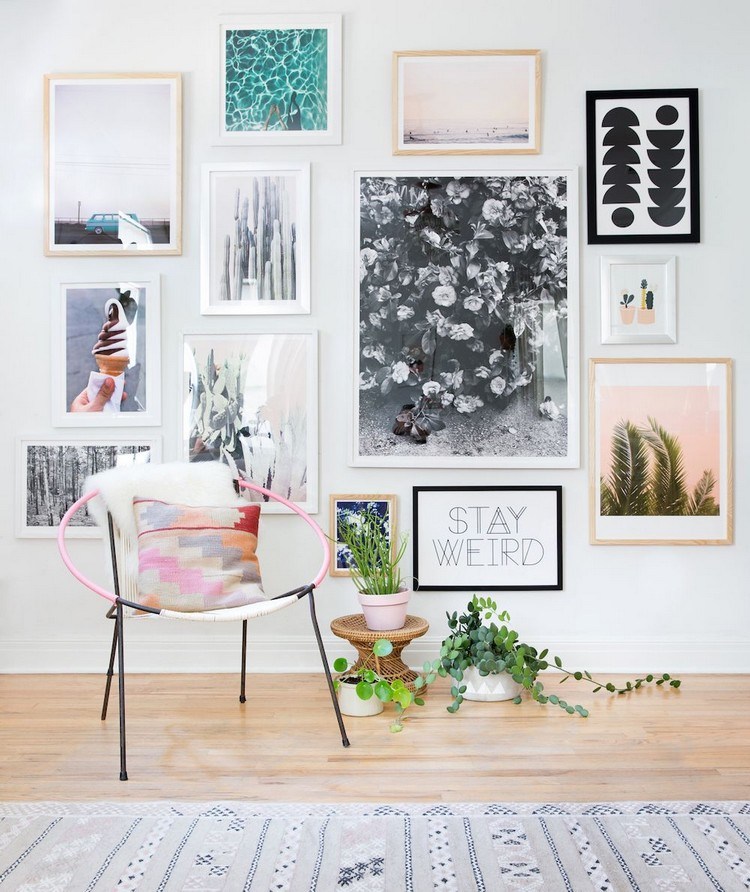 Bingkai foto yang digunakan untuk dekorasi dinding ini tidak selalu harus diisi dengan foto-fotomu. Coba tiru gaya ala tumblr dan isi bingkai foto lucudengan sejumlah kata mutiara atau foto objek yang berkaitan satu sama lain.