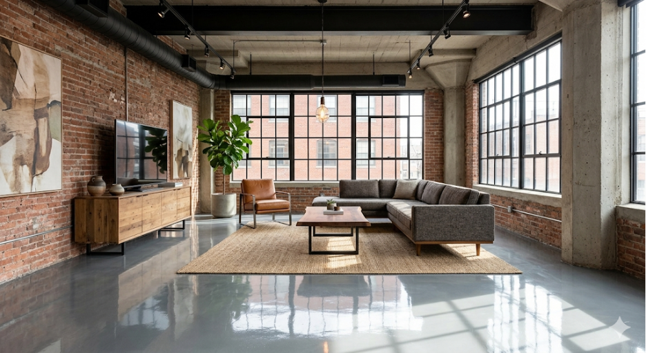 Rumah Tinggal dan Area Personal Konsep hunian industrial kini semakin digemari, dan epoxy menjadi kunci utama untuk menciptakan suasana loft perkotaan yang stylish. Kamu bisa menerapkannya di ruang tamu untuk menciptakan efek cetar yang memantulkan cahaya alami, dapur yang membutuhkan permukaan higienis anti noda, kamar tidur dengan tema industrial modern, hingga area laundry yang sering terkena air dan deterjen. Satu hal yang perlu diperhatikan: karena epoxy cenderung memberi kesan dingin secara visual, penggunaan furnitur kayu hangat seperti koleksi dari Dekoruma menjadi kunci untuk menjaga keseimbangan suasananya. Kombinasi antara dinginnya resin epoksi dan tekstur alami kayu menciptakan harmoni yang nyaman untuk ditinggali.