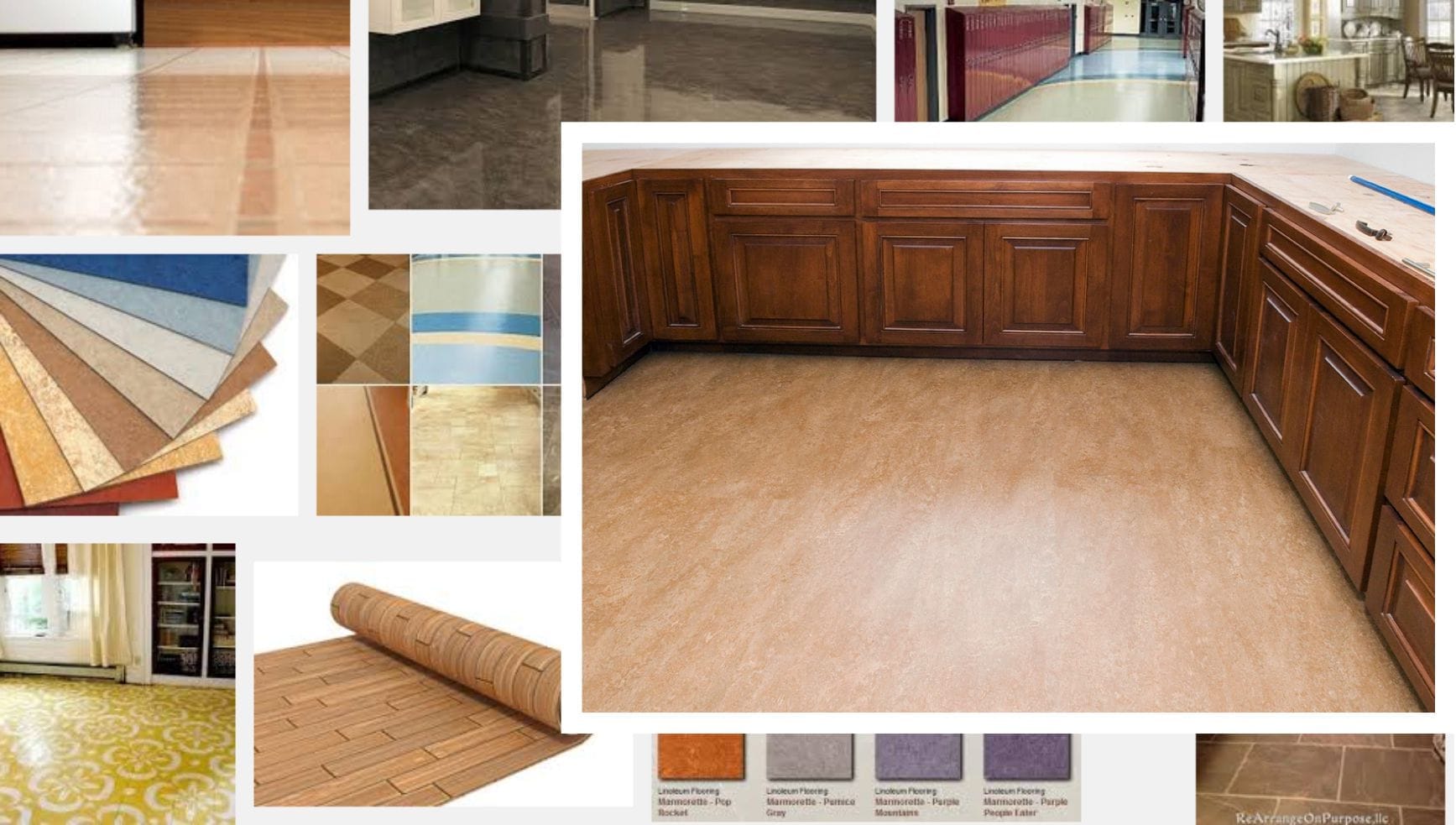 Lantai linoleum terbuat dari material alami yang dapat diperbarui seperti minyak biji rami, pinus resin, dan bubuk gabus. Teksturnya yang lembut bagi telapak kaki, namun tetap kuat, sehingga lantai jenis ini menjadi pilihan yang sangat tepat untuk area dapur dan ruang bermain. Lantai linoleum memiliki beberapa warna dan pola. Namun, Anda harus memastikan jika lantai linoleum yang dipilih adalah asli, bukan versi sintetisnya yang mengandung bahan kimia berbahaya yang tidak ramah Polivinil Klorida (PVC).