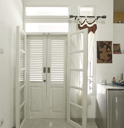 Pintu ini membatasi ruang keluarga dengan halaman belakang. Tampak dari luar adalah pintu kisi-kisi (krepyak) sedangkan dari dalam pintu kaca. Ketinggian pintu hanya 1,9m, dengan lebar masing-masing panel 50cm. Pintu yang sebelumnya bercat hijau kemudian di-finishing ulang dengan duko putih untuk memberi kesan modern.
