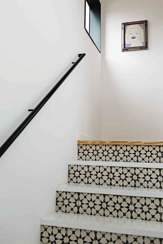 Untuk kamu yang ingin memadukan unsur natural dan modern, kamu bisa melapisi tangga kayu kamu dengan keramik sehingga tampilannya tidak membosankan. Ya, kamu bisa memodifikasi tangga klasik dengan memberikan lapisan keramik bermotif pada bagian bawahnya supaya lebih menonjolkan kesan kekinian dan serasi dengan interior modern yang ditempatkan di hunian kamu.