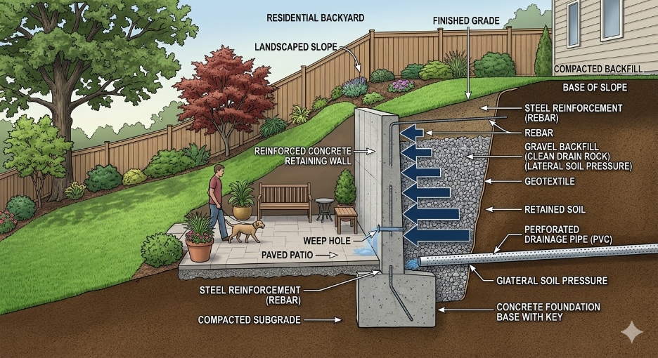 Supaya kamu bisa berkomunikasi efektif dengan kontraktor dan memastikan kualitas konstruksi, berikut komponen penting yang harus ada dalam sistem retaining wall: