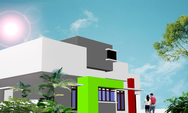 Boleh dikatakan dengan memakai konsep arsitektur minimalis sangatlah membantu kami untuk mengolah denah dan tampak bangunan sehingga bisa terlihat seperti pada tampilan 3 dimensi diatas.