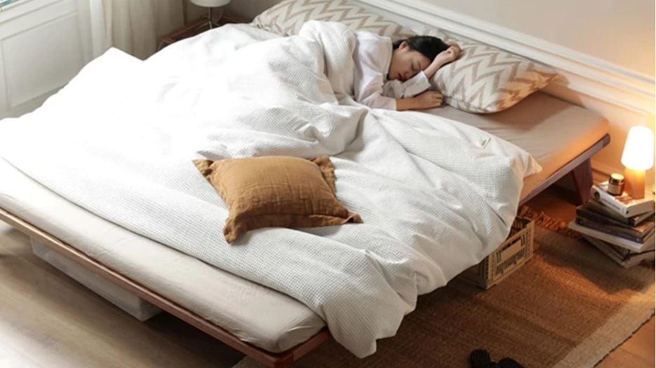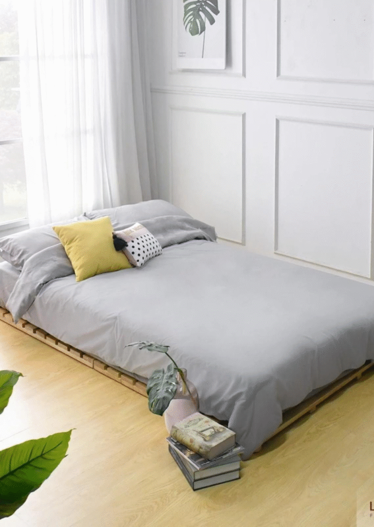 Terbuat dari material laminated veneer lumber (LVL), model dipan kayu untuk springbed dari Livien ini tampak unik. Pasalnya, dipan kayu tersebut dibuat khusus untuk kamar tidur lesehan.