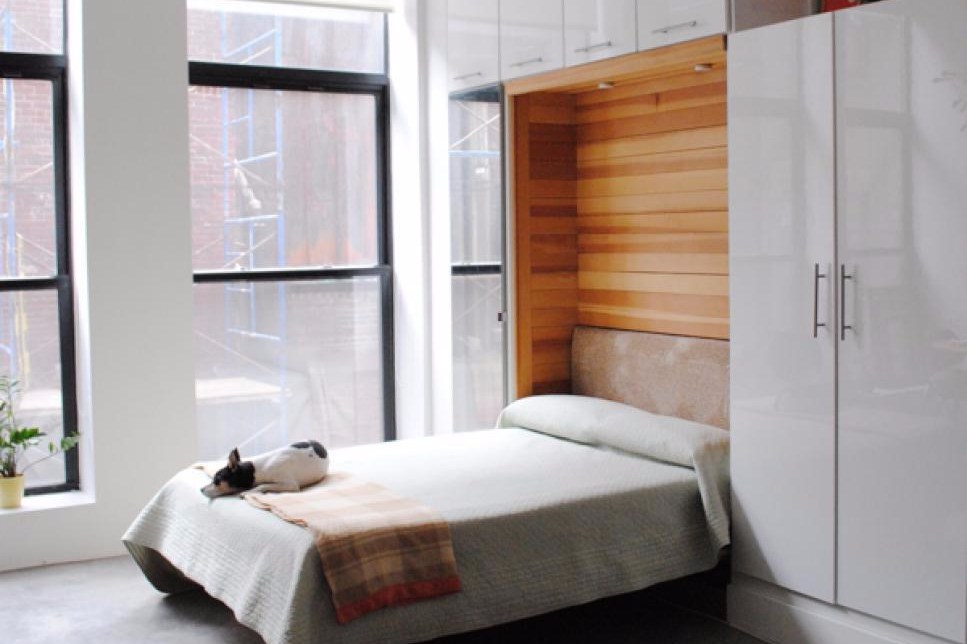 Dengan kamar mungil yang memiliki keterbatasan luas, sangatlah penting untuk memaksimalkan penggunaan ruang, apalagi kamar tidur. Untuk itu, kamu bisa menggunakan tempat tidur lipat yang berbentuk lemari. Tempat tidur lipat tidak memakan banyak tempat di kamar mungilmu karena jika dilipat maka tempat tidur ini akan berdiri layaknya lemari, namun tanpa adanya tempat menyimpan barang.