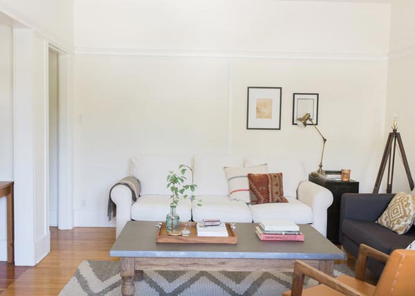 Jika kamu kesulitan dalam memilih furnitur untuk ruang tamu memanjangmu, cobalah untuk menggunakan sofa tunggal panjang untuk furnitur utama dengan kombinasi coffe table. Kombinasi tersebut memberi kenyamanan sekaligus memberi ruang tempat jika kamu ingin menambahkan barang lain misal kursi tambahan kecil.