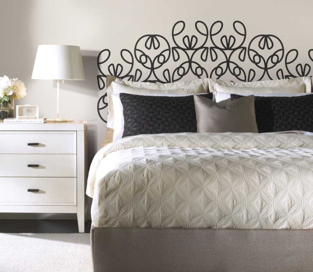 Solusi mendekorasi rumah yang inspiratif dan low budget untuk kamar tidur bisa diakali dengan headboard dari stiker seperti inspirasi ini. Tidak seluruh ruang tidur membutuhkan headboard, terutama untuk rumah yang memiliki luas terbatas. Jadi gunakan trik headboard ‘fiktif’ ini sebagai trik mendekorasi rumah kreatif.