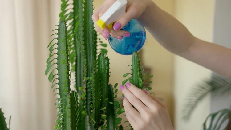 Tidak seperti tanaman lain yang perlu disiram setiap hari, kaktus cukup diberi air dua kali setiap minggunya. Cara yang tepat untuk memberi air kaktus adalah dengan cara disemprotkan dengan penyiram tanaman. Jangan berlebihan saat menyemprotnya karena akan membuat kaktus lembap dan membusuk.