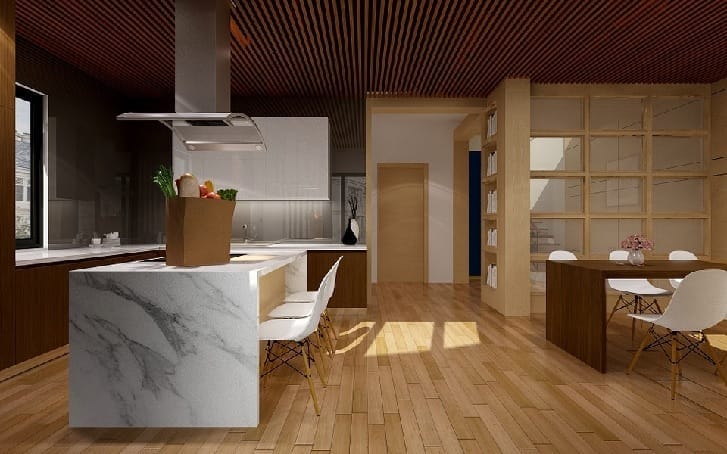Warna cerah pada permukaan kitchen set akan memberikan pantulan dari cahaya di sekitar ruangan, sehingga membuat dapur menjadi terlihat lebih terang dan luas.
