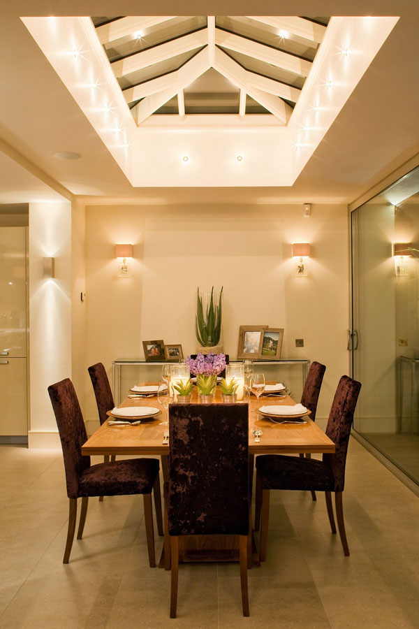 Langit-langit merupakan tempat yang tepat untuk menghabiskan budget untuk dekor. Di sini, kamu bisa memilih lampu gantung terbaik dengan harga lebih mahal karena mempengaruhi seluruh nuansa interior. Sementara sisa budget, kamu bisa menggunakannya untuk membeli elemen pencahayaan tambahan seperti lampu lantai atau lampu meja.