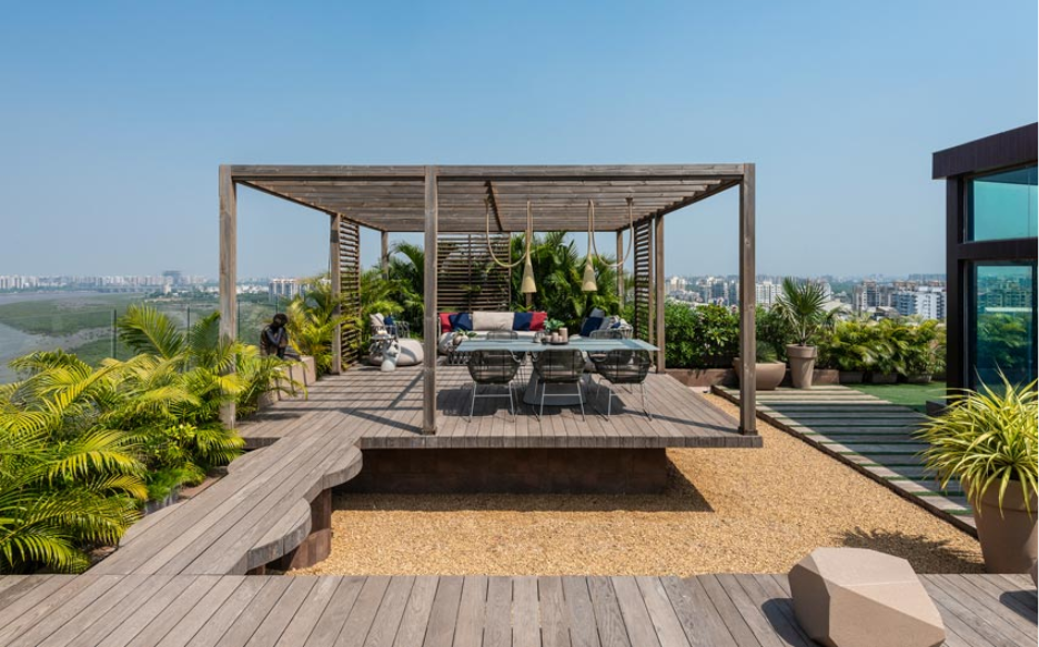 Dengan luas tersebut, teras tidak akan terasa sempit sekaligus tidak menghabiskan terlalu banyak area halaman.