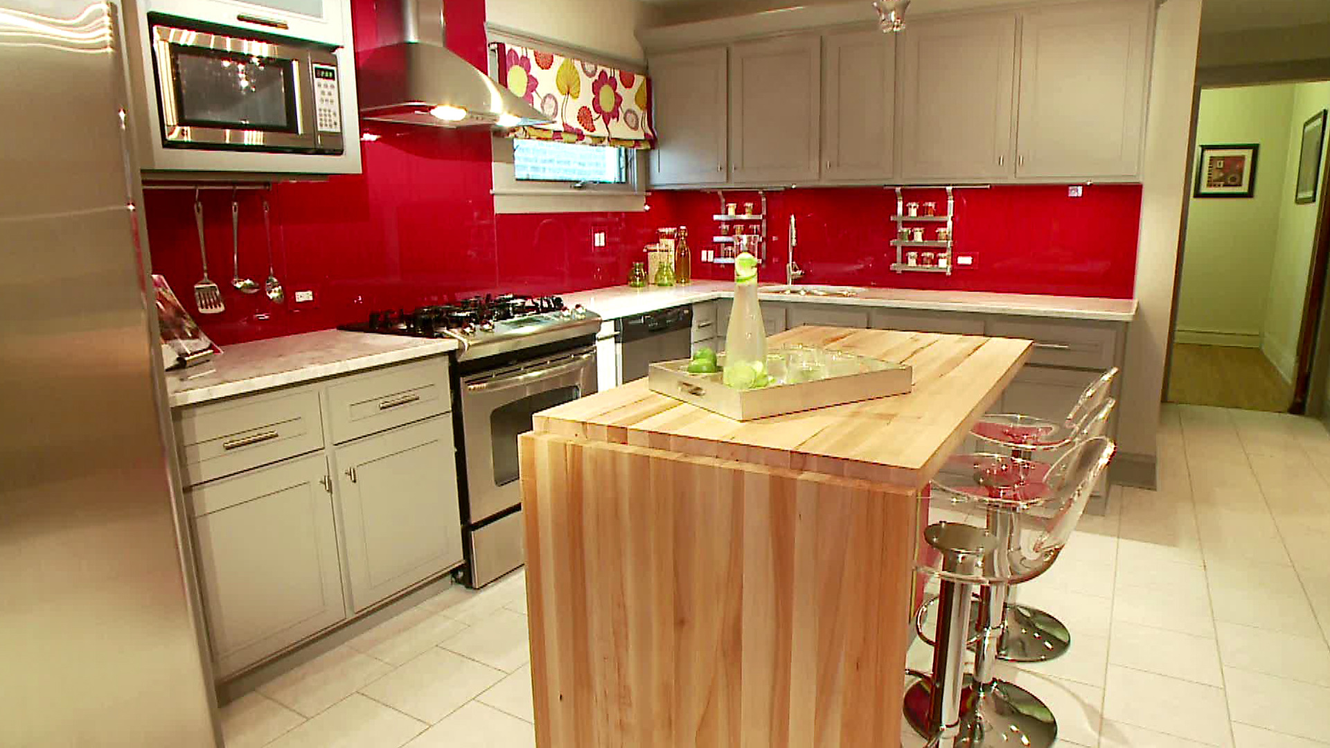 Warna merah dipercaya bisa menstimulasi selera makan, kombinasikan dengan perabotan dan peralatan dapur warna netral untuk menyeimbangi warna merah. Jangan gunakan warna yang terlalu cerah karena bisa mengganggu konsentrasi saat memasak.